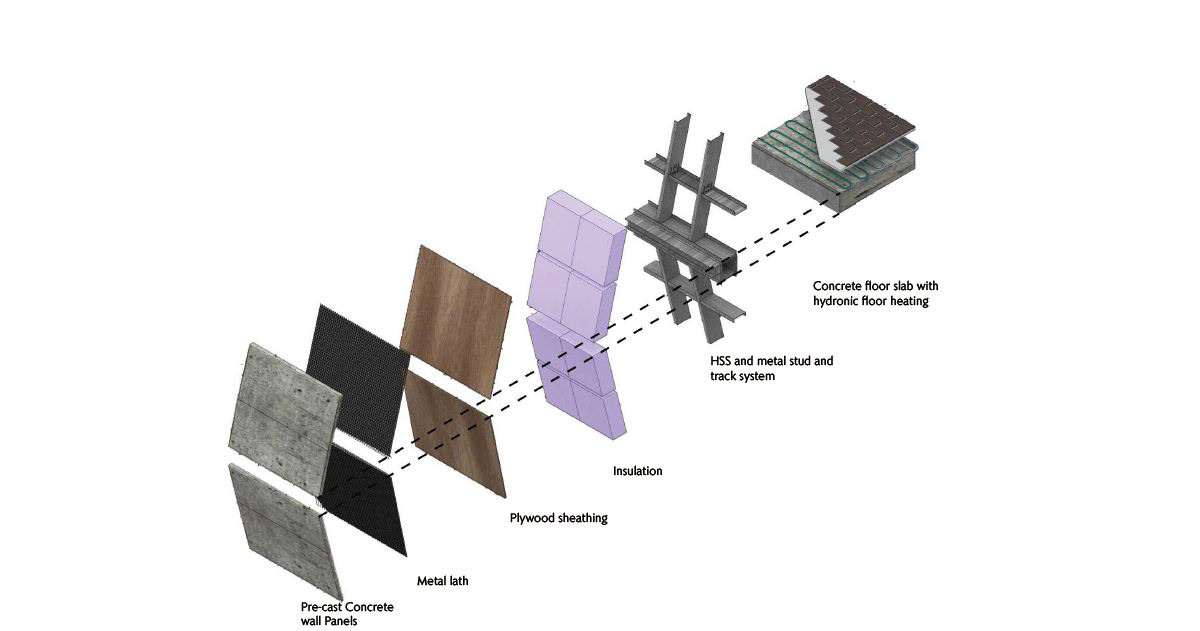 The site is located beside St. Andrew’s playground, with many shorter buildings around it. Condominiums are likely to replace these in the near future, with the building directly behind the site at this time sold to a developer. The design was trying to create a mountain-like exterior, in that mountains protect and fortify. Sustainability and preserving the existing playground/ park was a focus.